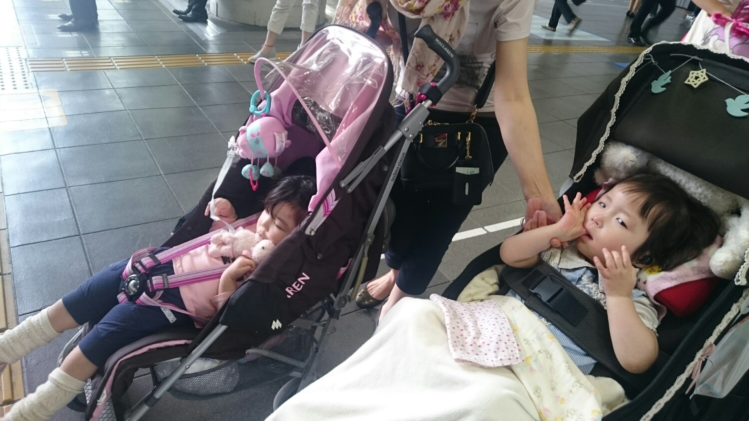 そしてももぞうは、大はしゃぎしてベビーカーから落ちそうな勢いでブリッジしてます…。
