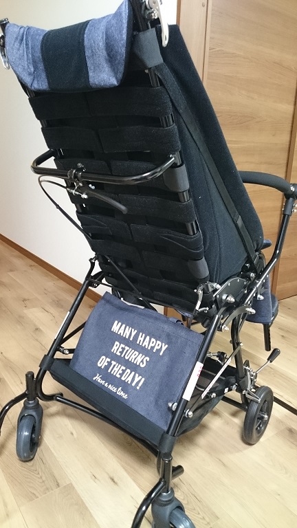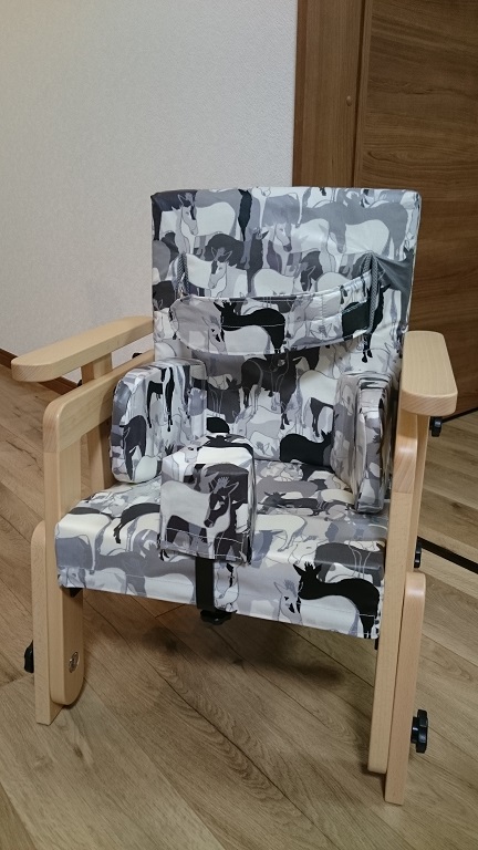 車いすと同じく、ピーエーエスさんで持ち込み生地の縫製をしてもらいました。
