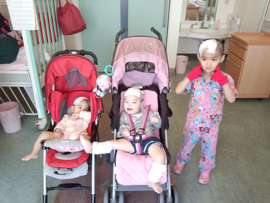 次女(ももぞう)と末っ子(まあやちゃん)は、今同じタイミングで術後一年の検査入院中。