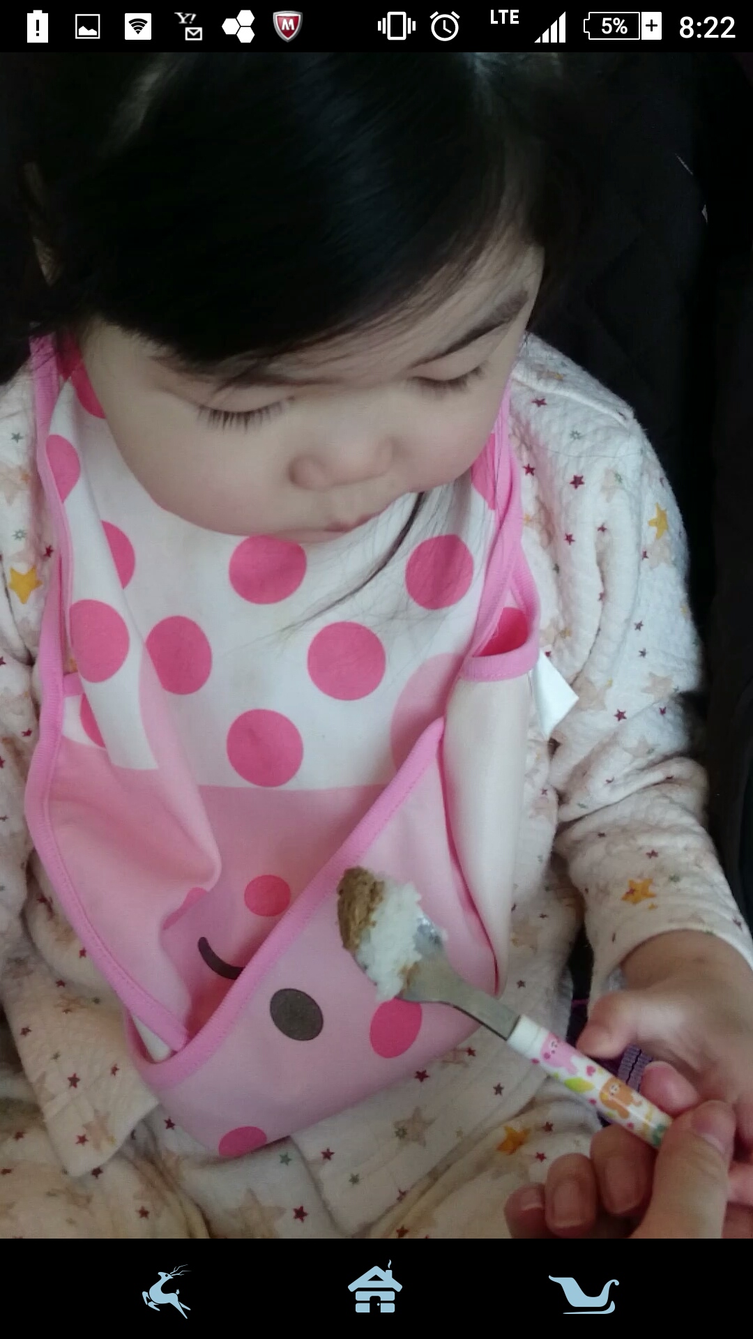 スプーンは先の丸いところから無限でごはんが出てくると思ってるのか、食べたあとの空のスプーンも何度も口に入れて確かめては、あれ?という顔をします。
