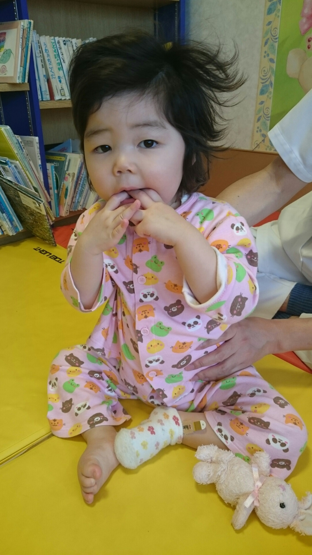 今回コメントさせていただいたのは、ももぞうちゃんのお口の症状が娘と似ているように感じたからです。娘の発作は点頭発作と部分発作の複合型のような感じで、部分発作は目と口に表れます。(とくに口は必ず。)娘も一日中口を触っています。発作の直前は特にひどいので、あ、発作が来る!とわかるほどです。一枚目のももぞうちゃんの写真のように指を奥まで入れてカミカミしている感じです。