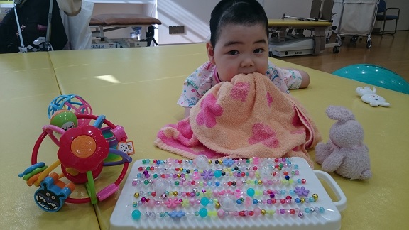 今までももぞうはあまり周りに興味を持つことがなく、お手々や毛布をひたすらお口に入れて、自分の世界で遊ぶことが多かったです。