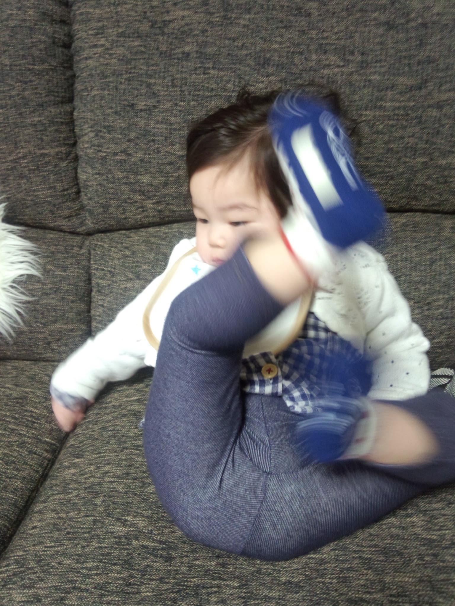 そして去年の4月(生後6ヶ月)頃には、絶賛点頭発作中にも関わらず、喃語どころかヒャーヒャー奇声を上げまくって遊ぶようになりました。